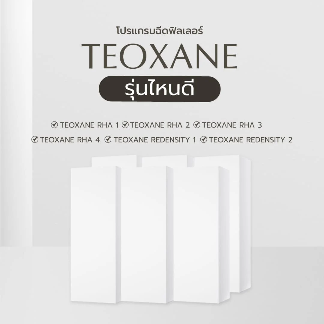 Teoxane เป็น Dynamic ฟิลเลอร์ เน้นผลลัพธ์ที่ดูเป็นธรรมชาติและมีความยืดหยุ่นสูง  เพราะใช้เทคโนโลยี PNT (Preserved Network Technology) สามารถปรับเนื้อฟิลเลอร์ให้เข้ากับโครงสร้างผิวได้ดี ไม่ขึ้นเป็นก้อนเมื่อมีการแสดงสีหน้าหรือขยับใบหน้า และความพิเศษอีกหนึ่งอย่างของฟิลเลอร์ Teoxane คือ ใน 1 หลอดจะมีฟิลเลอร์ทั้งหมด 1.3 CC
