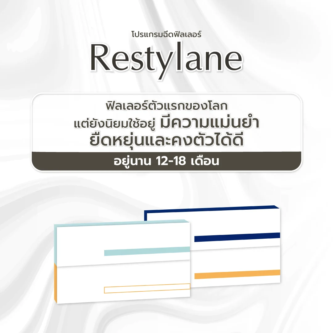 ฟิลเลอร์ Restylane ผลิตโดยบริษัท Galderma ประเทศสวีเดน เป็นแบรนด์ฟิลเลอร์แรกของโลก ที่อยู่มานานและยังเป็นที่นิยมจนถึงปัจจุบัน