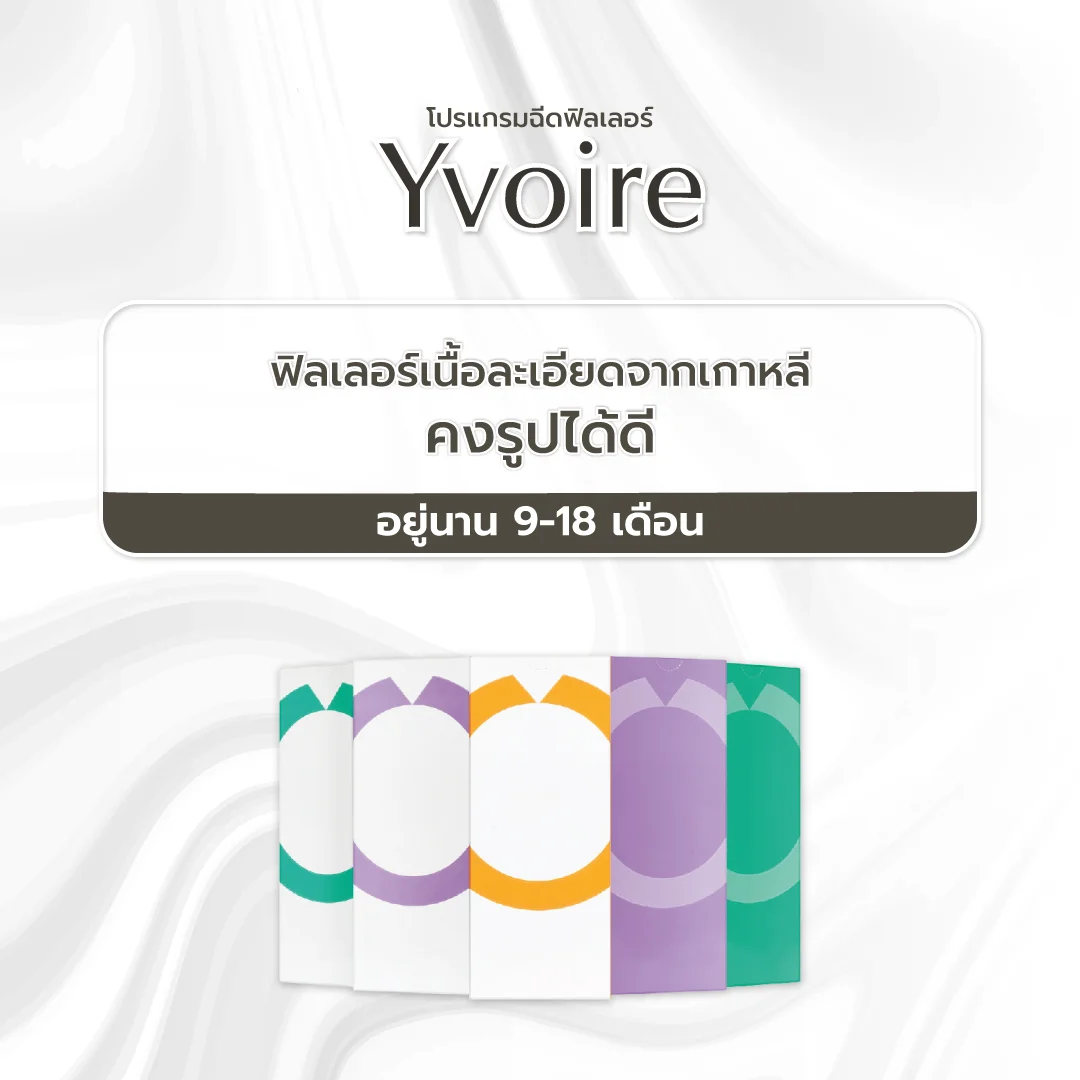 Yvoire HICE Cross-linking ทำให้เนื้อฟิลเลอร์มีความละเอียดสูง  ละเอียด เนียน ฉีดง่าย 9-18 เดือน